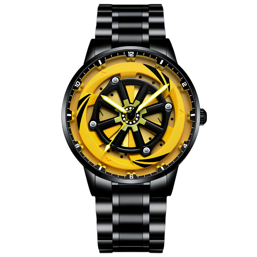 Nossos Relógios de Rotação combinam um mecanismo central hipnotizante com acabamento preciso.